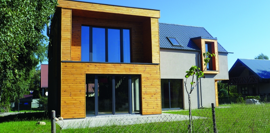 Jeśli chcemy nadać staremu domowi modny, kubistyczny wizerunek, sięgnijmy po płyty HPL, czyli laminowane płyty elewacyjne. Najczęściej są oferowane z nadrukiem odtwarzającym kolorystykę i wzory różnych rodzajów drewna, chociaż dostępne są także jednobarwne w wielu kolorach oraz z innymi wzorami. Wyróżnia je atrakcyjny duży format. Ich wymiary mogą mieć np. 1860x2550, 1530x3050, 1860x3650, 2130x4270 czy 2500x1200 mm. Mocuje się je zazwyczaj do rusztu. Ich rdzeń może tworzyć utwardzona płyta wiórowa, odporna na rozwarstwianie, płyta bakelitowa lub wiele warstw laminatu impregnowanego i sprasowanego pod ciśnieniem w wysokiej temperaturze. Warstwę wierzchnią tworzy laminat zabezpieczony żywicą chroniącą przed zarysowaniami, szkodliwym działaniem wilgoci, promieniowaniem UV. Tego rodzaju materiały są łatwe w utrzymaniu czystości i odporne na korozję biologiczną, w konsekwencji nie wymagają konserwacji typowej dla drewna. Do wykończenia ścian zewnętrznych można także wykorzystywać sklejkę sosnową, bukową, brzozową, olchową lub wykonaną z egzotycznych gatunków drewna. Są dostępne w wielu wymiarach, np. 2500x1250 lub 2500x625 mm. Ich montaż ułatwiają zakładki na krawędziach bocznych każdego arkusza. Sklejkę mocujemy na ruszcie. Jej warstwa wierzchnia może być frezowana oraz szlifowana lub szczotkowana. Można ją barwić, impregnować lub lakierować produktami do drewna. Zakonserwowana sklejka jest odporna na działanie warunków atmosferycznych.