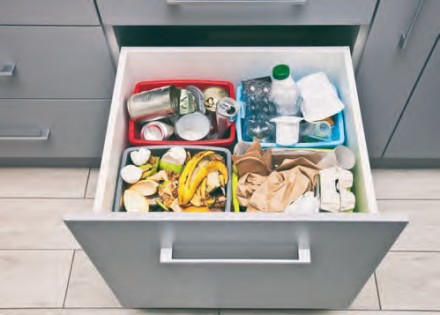 Dzisiaj oprócz typowego kosza na tzw. odpady zmieszane, jeśli miejsce na to pozwala, pod zlewem najlepiej zaplanować kilka pojemników służących do segregacji śmieci. Coraz częściej to rozwiązania systemowe. Są one wygodne w użyciu, a przy tym służą oszczędzaniu przestrzeni, która dzięki nim jest pod zlewem wykorzystana optymalnie, szczególnie jeśli zostanie zaprojektowana. Zanim wybierzemy system, wymierzmy szerokość szafki – zestawy są najczęściej dostosowane do szafek o szerokości 60 cm, chociaż są też sortowniki przeznaczone do węższych szafek projektowanych pod zlewozmywaki jednokomorowe. Ciekawą propozycją są kosze przeznaczone do stref narożnych.